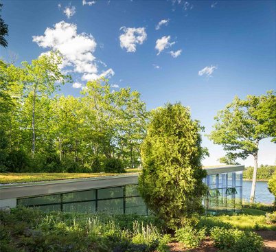 This ecological home is characterized by the use of local materials and passive sustainable features.