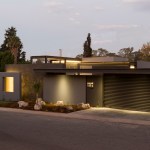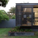 A framework of steel columns and beams surround the entrance while louvered planes conceal the four garages and floating roofs. It’s as if each plane – whether wall, roof or floor- has been intentionally treated differently either in material, texture or colour, creating a unique entrance design.