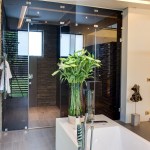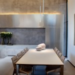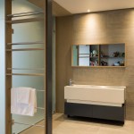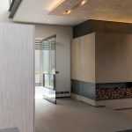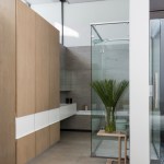 Upon arrival, a suspended steel framed cube hovers in mid air while the frameless glass pivot door welcomes you into a minimalist yet homely entrance hall.