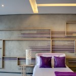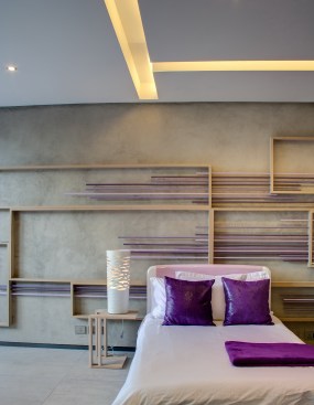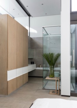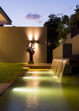 Direct access between the bedrooms and garden provides a refreshing view of this contemporary landscape. An illuminated wall behind the headboard of the bed creates an intimate ambience to this space, while the horizontal louvers make reference to the architecture externally, confirming once again that the interior and exterior of this home were designed to seamlessly merge. This results in visual continuity between every room and every aspect of the home.