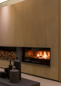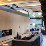 The visual connection between spaces is further enhanced by the use of texture and materials as can be seen by the OSB bulkheads and the oak paneling which follows through from the entrance into the lounge and living room. The wall unit houses the fireplace and TV unit and conceals the guest restroom and garage doors allowing for a simpler uncluttered interior.