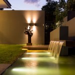 The lanai overlooks both swimming pool and water feature creating a contemporary landscape to compliment this modern home.