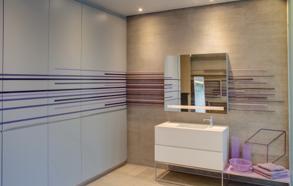 The monochromatic interior palette places emphasis on the difference in textures rather than a hierarchy in colour. This theme is mirrored in the selection of furniture whereby signature high gloss and leather furniture pieces are offset against textured fabric sofas.