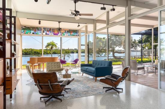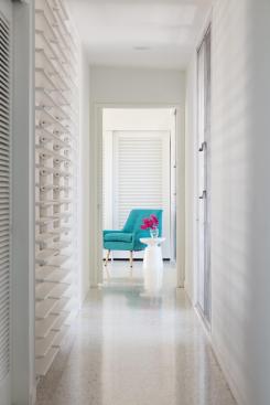 The original house design allowed for ample cross ventilation of all the spaces using either sliding glass doors or a combination of sliding glass doors and jalousie windows. Wood louvers were used in an interior bedroom to provide ventilation and privacy.