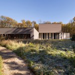 Under the influence of some centrifugal force, all the elements of the estate are exposed to the forest with their outer contour. The inner courtyard unites and brings together all the functional volumes of the house (living room, kitchen, utility rooms, gym). Typologically, the house is close to the traditional farmstead in the Carpathians.