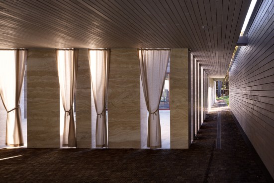 The forest manifests itself in two images. On the one hand, it is the forest which approaches the house, and on the other hand – it is the paradoxical perception of the forest from within the peristyle. This perception is further emphasized by the vertical apertures of the gallery that echo the tree trunks.