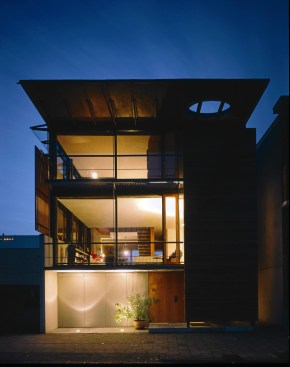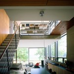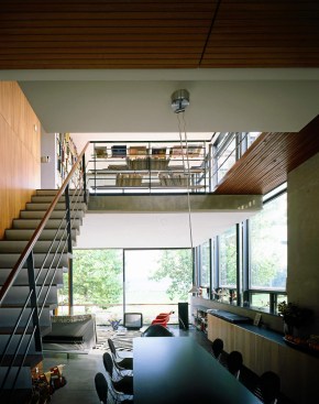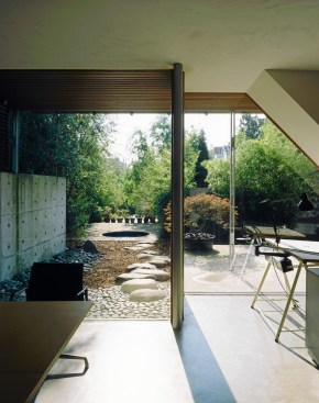 Designed in 1991, the House with Studio is a glass pavilion suited for living and working, with a magnificent view of the lake surrounds. In 2003, the house was extended to incorporate the adjacent 19th century brick terrace house. The use of flexible floor plans anticipates the changing needs of the inhabitants.