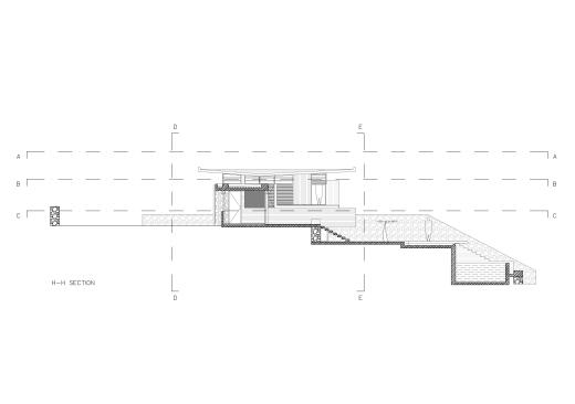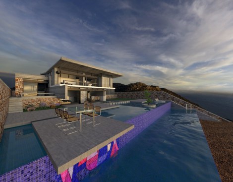 – Step 2: The continuous slope is being fragmented into “pezoules” (or terraces), that will accept the different indoor and outdoor uses of the dwelling. A low retaining wall penetrates the residence and provides it with two ground levels, which ensure its absolute integration onto the downhill landscape.