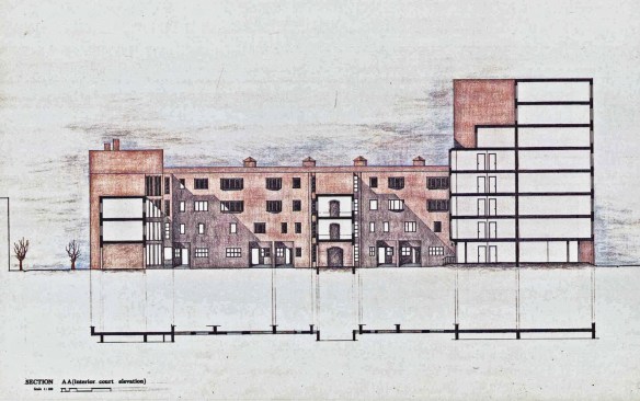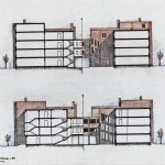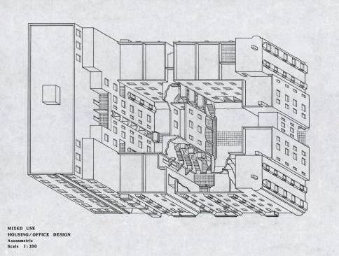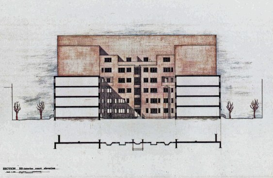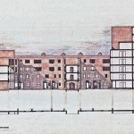 Occupying a city block, the project seeks to maximize views and natural lighting through courtyards and angled windows while offering residents a mix of apartment arrangements.