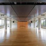 The four dormitory floors rest on a podium of public space, including the entry and a glass-enclosed walkway linking to the old seminary. Groups practice yoga in a large meeting room lined with sliding windows that ensure guests see only the sky, mountain ridges and trees from their mats on the floor; the windows also allow for cross-ventilation. The simplicity of the space is not stylistic but elemental. The sprung floors are wood; the walls and ceiling are exposed concrete, with plywood panels dropped from the ceiling to mask pipes. Color is natural and integral. Rose has always been a master of material collage, and the material honesty throughout the dormitory gives the space a sense of embodied authenticity. No simulacra, only the real thing, plus tight editing to eliminate the unnecessary.
