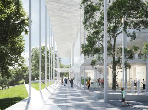 The winning design concept envisages an airy, elegant superstructure generously shaded by a large canopy within a grove of oak trees. The proposal is strongly connected to the site and context: the landscape and history of Spotts Park. In KDA’s words, the new building, which is attuned to Houston’s demanding climate, is intended to be ‘as welcoming as the shadow beneath a tree’.