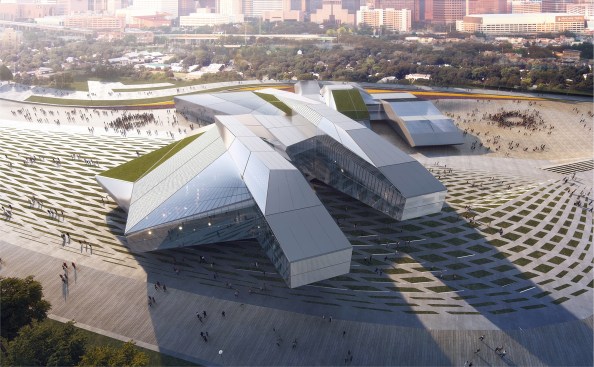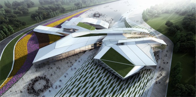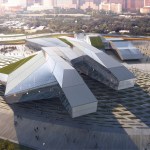 The architectural tectonics shift, bundle, radiate, and project upward in flight to create nodes of complexity in the form of tessellated metallic shells with varied glass façades. This strategy transforms the internal poly-function into a stealth metallic body which carries a meaning signature of a craft of departure, which manifests its conceptual synthesis. It also includes a series of green roofs, led walls, and a labyrinth for digital projections. The total development for the concept proposal is 9,000 m2.