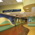 The hospital wanted the rear entrance to be distinct from main front entrance of the hospital. This corridor serves mostly out-patients and the elevator lobby for the rear of the hospital building, called the Tower Building.