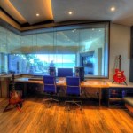 WSDG worked with local contractors Greg Muise of Wardell Builders and Kevin “Clutch” Page of ProCraft Media to ensure an impeccable translation from drawing to completed studio. A previous local studio project collaboration with ProCraft assured Morris of a highly skilled systems integration. “Chris Huber was committed to high end finishes,” Morris reports. “Lots of wood and massive amounts of glass – on paper it looks like an acoustic nightmare! But, we performed extensive acoustic modeling to ensure flawless room acoustics, incorporating sophisticated absorptive elements including perforated wood wall treatments and ‘acoustic ceiling plaster’ which looks reflective but is actually highly efficient low frequency absorption. The Huber Music Room is a textbook example of an ideally realized acoustic balance.”