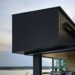 Some constraints the build and design team had to consider were the harsh western sun and the home’s proximity to the edge of the cliff, with the foundation needing special accommodations. Materials were used to endure the lake front elements like slab on grade, wood frame construction with stone, stucco, and metal panels and a metal roof. A ‘floating’ clad metal box – housing the upstairs bedrooms, is juxtaposed over the outdoor living area.