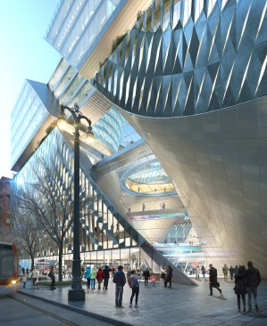 In 2013, SHoP was selected after an invited competition to study the possibilities for using the former J.L. Hudson’s Department Store site in downtown Detroit as a catalyst for the ongoing revitalization of the city. Our clients at Rock Ventures recognized that the Hudson’s site must play a central role in their ongoing efforts to revitalize the city by returning residents, commerce, and cultural uses to the center of the city. Together with Detroit-based architects Hamilton Anderson Associates, we designed a building that offers a very broad range of uses. At its center is an enclosed community civic space that opens wide to welcome residents and visitors from surrounding streets. Around that center, retail, residential as well as food and culture will provide everyday services now lacking for the influx of residents that continue to relocate Downtown. Once complete, the building will be a powerful tool for encouraging growth and the renewal of civic pride—not only downtown but in the surrounding communities and the city and the region as a whole.