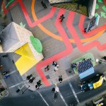 The main material used is cloth tape coated with polyethylene in various colors and sizes. Further, the design has no additional volumes to the existing on site. In this sense, the project acts as a costume, a dress for the plaza placing itself on top of the existing and awakening new spatial possibilities on a given structure.
