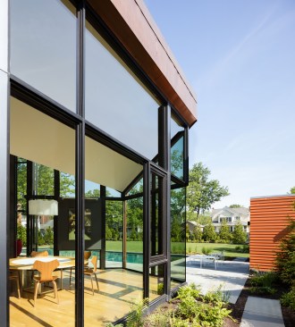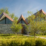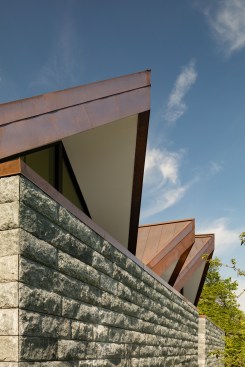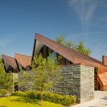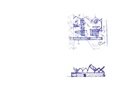 Inspired by the sloped roof requirements of a historic district, an abstracted origami tent drapes a steel framed hull-space bound by transparent walls and an arrangement of pavilions.