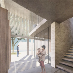 This international competition-winning design envisions a place of respite for newly arrived migrants to the U.S. The new center will provide a permanent home for the operation envisioned and managed by Sister Norma Pimentel, MJ. Operating in borrowed space since 2014, the center has greeted migrants recently granted asylum by providing warm showers and meals, personal items, and helping them make travel arrangements. The design incorporates a range of sustainable design features, including daylighting, thermal mass heating and cooling, green walls, and solar panels.
