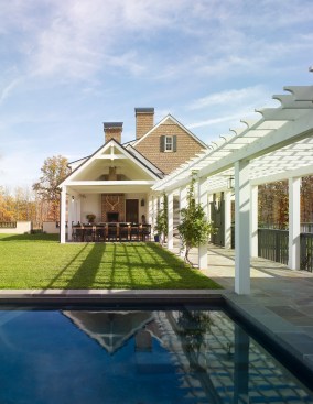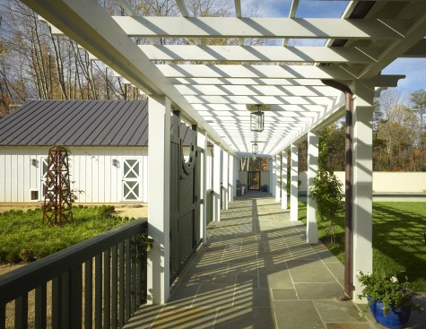 The house was conceived as a Virginia farmhouse with telescoping wings that appear to have been added on over many years. The linear room arrangement provides a broad range of vantage points from both inside and outside the house. Several covered porches provide space for gathering as well as quiet contemplation in the landscape. The second floor includes a traditional screened sleeping porch, offering an elevated perspective of the surrounding countryside.