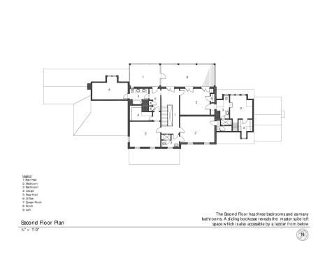 The design utilizes brick, clapboard, standing seam metal roof, wood shutters, as well as traditional detailing to support its old house appearance. Interior spaces continue the traditional feel through a wide range of flooring materials, molding, paneling, lighting, tile, and antique hardware.