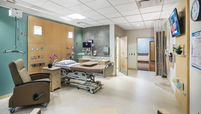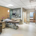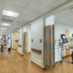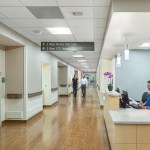The new 4th floor has a link to the existing tower building’s 4th floor, and a nursing unit of 28 private med/surg beds and related support spaces is planned for Phase 2. The new 5th floor houses the cardiac department and includes three catheterization labs with a ten-bed holding unit, a Coronary Care Unit of four beds, and a 16-bed Step-Down Patient Care Unit and related support spaces at the core. A portion of the existing 5th floor tower building was renovated to provide a new waiting area and intake functions for the Cardiac Catheterization Department. The project also includes two new dedicated elevators. In total, the project encompassed 52,000 square feet.