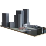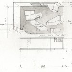 The concrete structure of the building is exposed and aluminum painted, giving the exterior a subtle sparkle. A golden-section upturned rectangle is carved out according to the browsing circuit of movement within the interior of library. Glazed cuts in the façade grant users views toward the city as they move up a series of bookshelf flanked stairs. The main Manhattan view, perpendicular to the internal movement of the library, gives visitors to this small space a dramatic experience.