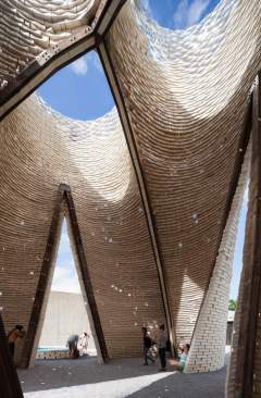 The bricks are lightweight, low cost, and extremely sustainable. We then created the world’s first large-scale outdoor construction out