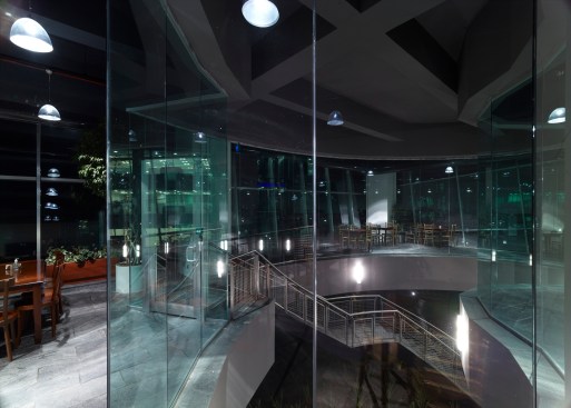 After the excavation and construction, a ground restoration with the aim to preserve the natural %10 slope is carried out. The aluminium frame façade, the partial roof slope, the fenestation and main contours of the filled façades are all referenced to this natural slope on the terrain. On the side of the block overlooking the view each storey was successively regressed, there by lightening the appearance of the maas while providing terraces facing the offices.