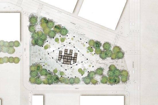The plaza around the tower will feature a dense canopy of tall trees, designed in alignment with local climate to provide both shade and shelter. The canopy of trees filters the views to the surrounding buildings and mimics the shade and ambiance of a Filipino tropical forest. Filipino culture emphasizes a strong penchant for gatherings and celebrations, traditionally enjoyed in public spaces. Hence, the plaza will offer a protected space for such popular activities and social gatherings to create life in the heart of the city.
