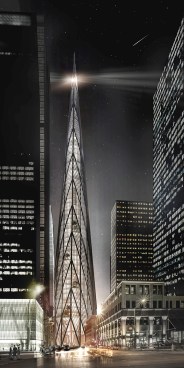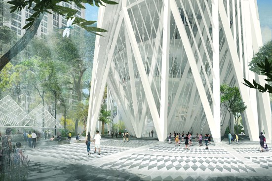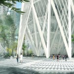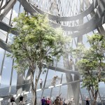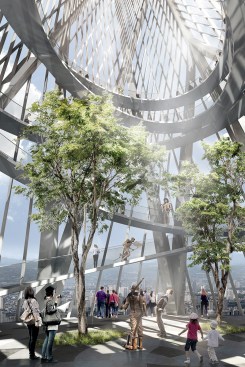 The tower features a large public plaza with a canopy of dense trees, state of the art workspaces, restaurants, a civic center with exhibition spaces and a spectacular public observatory at the top. The tower is designed to set an example for how tall buildings should give back to cities and its people and how to revitalize an entire area.