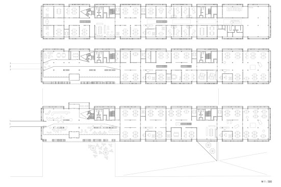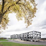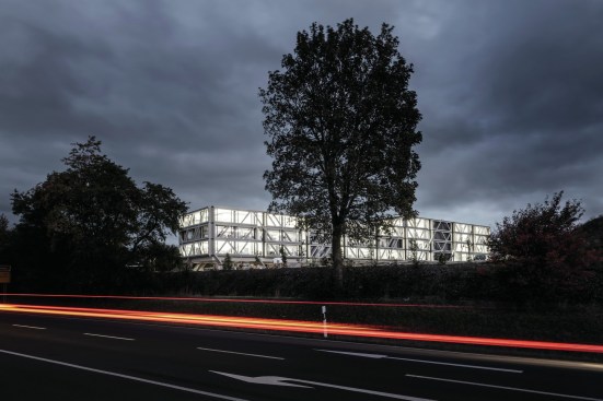 That dedication to localism, to the scale and simplicity of its small-town environs, is essential to the project’s ethos. “Everybody is really happy working there,” explains Schneider: Even as the company has set up satellite offices in other cities, the family that founded it (now in its second generation) has never seriously considered moving the base of operations elsewhere. “The people have built houses in Falkenberg, had families,” Schneider says, and their employers are eager to preserve the close-knit feeling that they believe has been essential to their success. As incongruous as the new building might appear at first, its intent—deftly expressed in the beguiling web work of its wooden shell—is to weave the company ever more tightly into the fabric of the surrounding community.