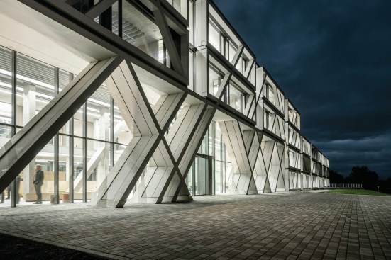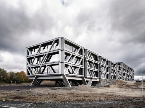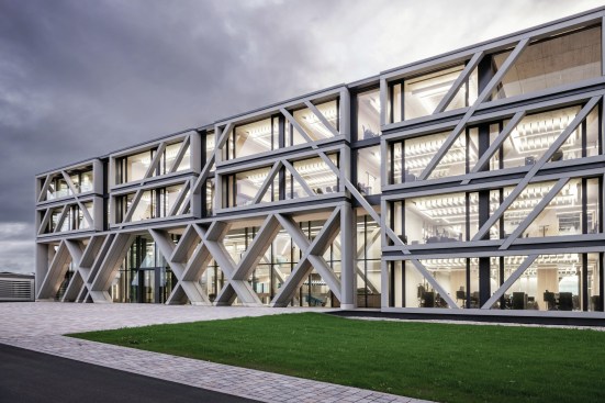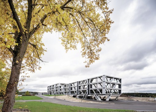 Digital logistics firm IGZ was launched just 20 years ago in a barn in the tiny town of Falkenberg, in southern Germany’s Upper Palatinate region. Today, the company is still based in the village—a bit of a surprise given that IGZ now boasts some 450 employees, and that it’s worked with hundreds of clients all across Europe, including fashion giant Hugo Boss and carmaker BMW. The company’s hometown is so small that when IGZ first approached the architects at Berlin-based studio J. Mayer H. to tackle its new headquarters commission, “We didn’t know which Falkenberg they meant,” says Hans Schneider. As JMH’s project manager for the 86,000-square-foot building, Schneider was tasked with helping to put this Falkenberg on the map.