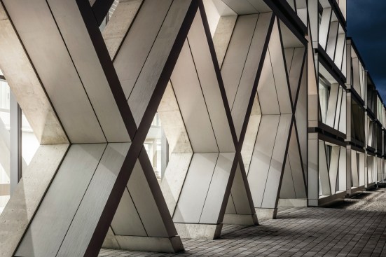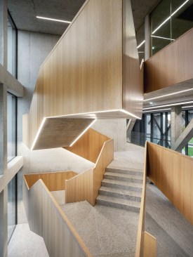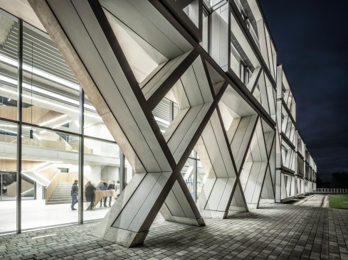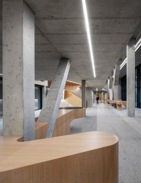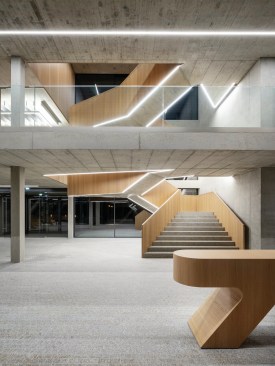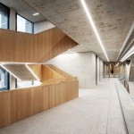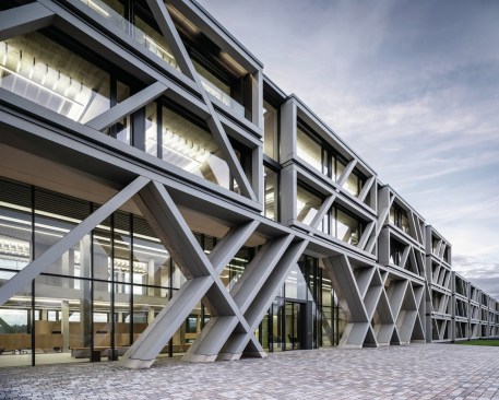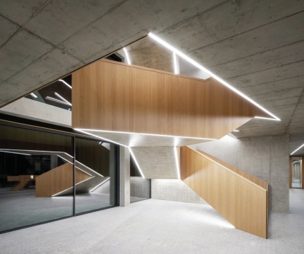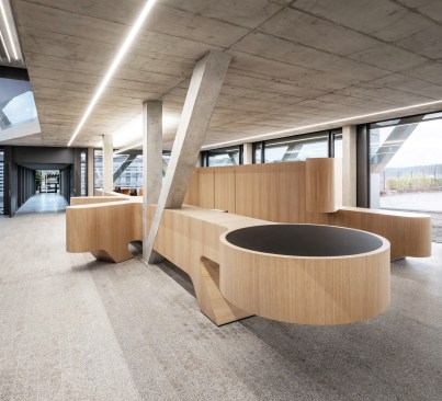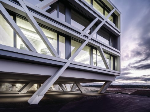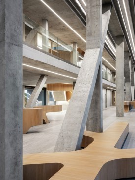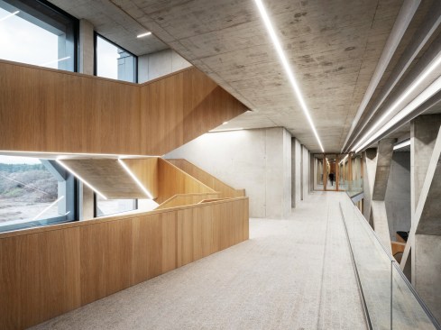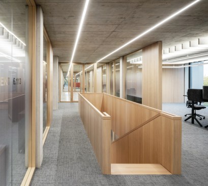 The building relies on a passive temperature control method that is integrated into the reinforced concrete ceilings. Heating and cooling is thus regulated by the building’s concrete core temperature control system. The energy required for this is sustainably generated through a total of 60 geothermal piles, each 100m deep.