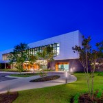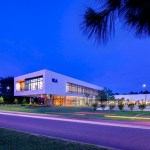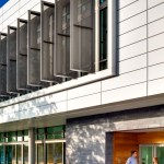white metal panels, and accents of color to highlight important spaces. Renovations to an existing facility, a single story brick building built in the mid-1980’s as a spec manufacturing building, were phased so that operations in the manufacturing and assembly areas could continue with little interruption. The existing facade also received a facelift, creating a seamless look transition to the new administration building. As a