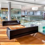 The expanded North American headquarters for this German manufacturer tailors a German aesthetic to an American workplace. The addition maximizes the constrained site with clean lines and modernist design. he result is crisp, contemporary, and comfortable. A double-height lobby welcomes visitors and leads