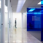 6. A gap in the paper wall from the original design that showed the importance of paper in our lives a decade ago is filled with 1’s and 0’s to remind visitors of the importance of digital information and that a lot of their information is already stored digitally.
