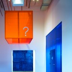 1. A cloud made of pre-owned filing cabinets suspended from the ceiling represents the transition from storing information in paper-based systems to storing information digitally in the cloud.