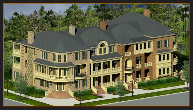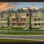 Imperial provided a unique challenge to a company committed to designing homes specific to their surroundings. A mixed-used development built on the site of an abandoned sugar factory, Imperial is a work-live-play community with a “sweet” history. Central to the redeveloped area is a million-dollar fountain located in a roundabout that fronts our six-acre parcel of land, which is surrounded on its other sides by waterways. We designed our homes to follow the curve of the traffic circle, creating an almost trapezoidal design that is wider in the front than in the back. The interiors of the three-story homes, however, are rectangular, allowing for traditional furniture placement, with extra space used for ductwork and other behind-the-walls necessities. The homes boast generous outdoor living space, including porches and second- and third-floor balconies. Consideration is given to homeowners who need additional storage – units have three-car garages – and like to entertain with an open second floor. The third floor is a homeowner retreat, with much of the space devoted to the expansive master suite.