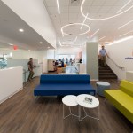 Inari’s new location now accommodates a larger state-of-the-art R&D Lab with expanded space for plant growth chambers and separate individual specialty labs. The expanded office area centers around collaborative open office work areas with supporting Conference, Phone and Huddle Room facilities. As the layout is divided on two floors, a new contemporary communicating stair was designed to provide direct internal access.