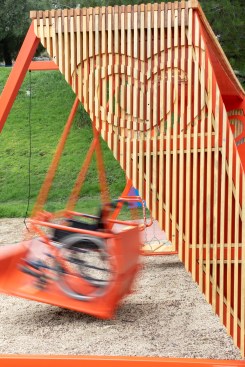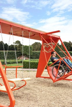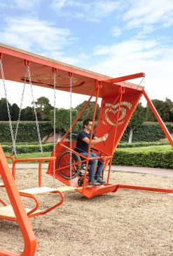 In collaboration with Unilever, we developed a swing prototype for one of its brands: Helados Holanda, this project represented a challenge for us, so we started an investigation based on a series of surveys carried out with children with disabilities, to find out their desires and their limitations when approaching playgrounds. The structure supports three types of swings; simple, double and one specialized for wheelchairs, we chose wood to go along the metal structure for its kindness as a material and great aesthetic contribution. The swing that is intended to be used by a kid in a wheelchair, is made by a system that allows the user to climb on it with total autonomy, through a door that is deployed by a crank. One of our objectives was to provide complete autonomy to the user and provide experiences that every child wants and enjoys, considering any user and generates belonging. Inclusive Swing seeks to reintegrate children with disabilities into one of the most important activities of childhood, swing, action that represents not only happiness but therapeutic and motor contributions in child development. Following the idea that the future of design focuses on including and understanding all types of users regardless of their condition, we promote functional and global design with this project.
