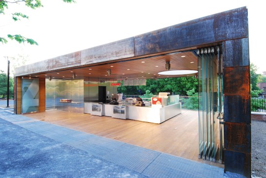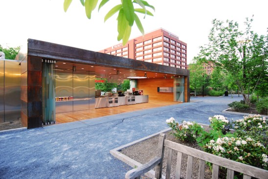 As conceived in the master plan, the introduction of food service to Independence Mall was envisioned as a series of kiosks similar to Bryant Park in New York. At the outset of this project the executive director of Independence Visitor Center Corporation (IVCC) charged the design team with coming up with a solution suitable for the sacred ground of Independence Mall but that would not require a subsidized operation.