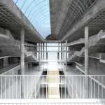 The central atrium with multiple grand stairs connect various levels, with centralised central core and flexible exhibits spaces on either side minimize the long linear corridors resulting in less walking time to cover the same amount of area.