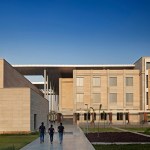 Designed by international design and architecture firm Perkins Eastman, the 1,200-student campus—equal parts Indian heart and global soul, Western infrastructure and core ISB values–at the foothills of the Himalayas is simultaneously of its time yet timeless, uniquely responsive to its site yet rooted in international best practices. Drawing on Vastu principles as well as architectural precedents that speak to Indian history, culture, and climate—Le Corbusier’s Capitol Complex and Joseph Allen Stein’s Habitat Centre among them—the 725,000 gsf (Phase 1; 2M gsf all phases) campus honors India’s strong architectural legacy while it sets the stage for the future of international business.