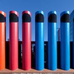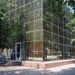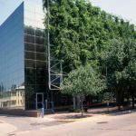 With all of the eye-catching buildings in Columbus, Ind., the addition to the Indiana Bell (now AT&T) Switching Center, designed by Paul Kennon of Houston’s Caudill Rowlett Scott (which was acquired by HOK in 1994), has received less attention than it deserves. Kennon wanted to hide this one-story addition to a three-story telephone equipment facility within its residential context by wrapping both structures in reflective glass. He disguised the nearly windowless facility with a vertical space-frame trellis that supports climbing vegetation. The trellis, together with pear trees along the corner lot, shaded narrow brick plazas as well as the building’s south and east façades. Kennon placed nine brightly colored mechanical ducts by a rear alley, standing sentinel-like as if guarding the all-glass building.