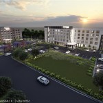 Studio Silver releases rendering for planned unit development for proposed 5 story new construction two hotels and one restaurant . Each hotel will be 100 rooms each. Planned development also includes an out lot for a a 4000 SqFt restaurant.