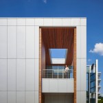 The solarium is a central, double-height gathering and connector-space around which the building is folded. It brings the warm winter sunlight inside, making the central feature a heat source. In summer, exterior shades filter the sun, blocking heat while allowing daylight to keep the interior cool and comfortable.