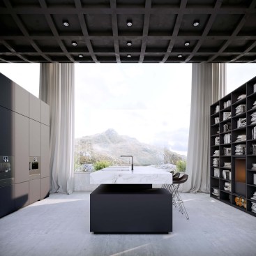 Northern Norway is a paradise for those, who prefer quite retreat in the solitude of wild nature rather than southern busy touristic places. Infinity House was designed for this specific purpose. Located in the remote area, it is surrounded by harsh northern landscapes with panoramic views of mountains and Norwegian Sea. Simple monolithic concrete volume rises above the rocks. Raw materials create feeling of the connection with the surrounding landscape. Huge windows take advantage of spectacular views and blur the boundary between exterior and interior.
