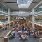 Innovation Academy provides rigorous and relevant instruction in the STEM sectors of Information Technology, Engineering, and Health Sciences. The project is housed in the old Milton High School,and the interior design capitalizes on collaboration through the creation of a central three-story atrium, known as Touchdown Commons. This space houses both the media center and cafeteria to create the ‘Starbucks effect’ in this communal space, where students can eat, collaborate, and socialize throughout the day. This project was designed by Cooper Carry’s K-12 Studio in collaboration with Cooper Carry’s Higher Education Studio and Science + Technology Studio. This unique blend of experience provided for vocational and career readiness strategies and specialized STEM design.