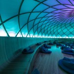 Meditation requires a different state of mind – We introduced a gradual transition from the hustling and bustling NY streets all the way to the calm Dome meditation space. The Dome which looks like a simple natural space devoid of all technology, is actually a highly engineered space with an immersive light- and sound environment. The space is complemented by 2 LED rings that adjusts light intensity and color depending on the meditation, and a grid of tiny invisible speakers designed to create a perfectly even sound space. Specially designed seating pads by Ligne Roset support the guests in all poses, helping them to balance and focus. This holistic enclosure helps to transform one’s mood and state of being.